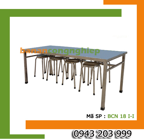 – Bàn ăn công nghiệp BCN-18-I-I chân inox hộp mặt bàn composite, có móc treo ghế tiện lợi cho việc lau dọn, giúp cho nhà ăn tại các khu công nghiệp công cộng được linh hoạt trong sử dụng.