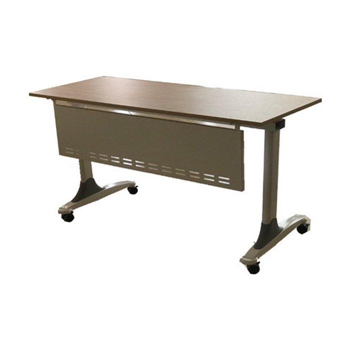 Bàn đào tạo hòa phát BHT01 mặt bàn gỗ Melamine màu M2 có thể gấp gọn. Khung bàn bằng thép sơn tĩnh điện. Yếm thép lửng có đột lỗ trang trí. Chân bàn có bánh xe giúp cho việc di chuyển dễ dàng.