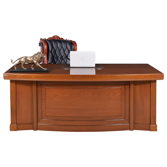 – Yếm bàn giám đốc phẳng sát đất, 2 bên yếm nối với chân bàn lượn cong vào phía trong, chính giữa yếm được ghép nổi thêm 2 cạnh lớn, bề mặt yếm ốp chỉ nổi hình chữ nhật ,vân gỗ veneer sang trọng.