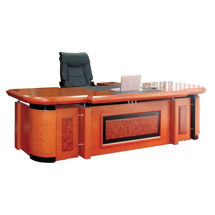 Bàn Giám Đốc DT3212V7 gỗ công nghiệp phủ Veneer cao cấp, mặt bàn lượn cong, có yếm ốp nổi vân màu đen