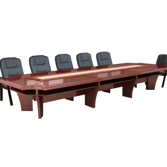 Bàn họp gỗ sơn PU CT5016H1 quây có đợt hoa bằng kính ở giữa, 4 góc khoét lượn, chân ghép hộp lượn cong