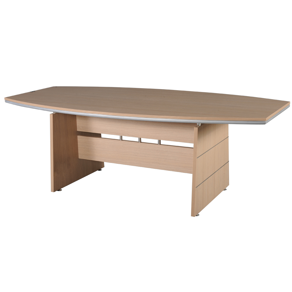 Bàn họp gỗ Melamine HRH2010 hình chữ nhật, mặt có ốp trang trí, yếm chia 2 mảnh liên kết bằng trj inox