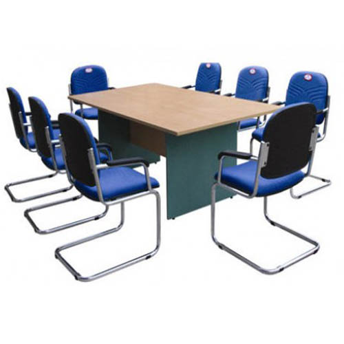 Bàn họp hình chữ nhật hoặc oval, mặt bàn liền, khung sử dụng đợt, chất liệu gỗ công nghiệp MFC nhập Đức, có khả năng chống xước nhẹ.