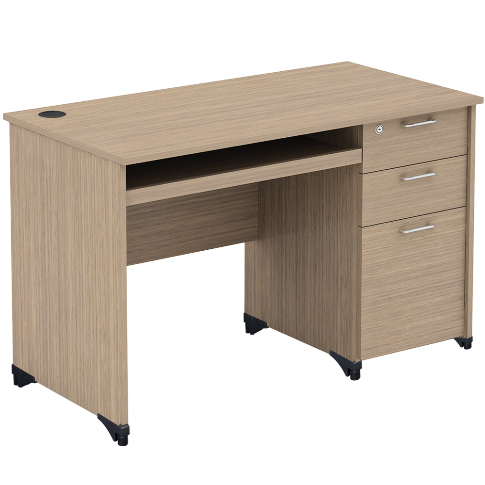 Bàn nhân viên AT120SHL3DF làm từ gỗ công nghiệp Melamine cao cấp, hộc liền sát đất, có khay bàn phím, yếm gỗ lửng