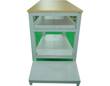 Bàn được sản xuất theo kích thước yêu cầu, có thể thay đổi chiều cao các đợt, có thể tăng giảm cân chỉnh phần bánh xe cho phù hợp với mặt bằng bánh xe có khoá chốt cố định.