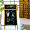 Nội dung trên bảng menu chân đứng cũng có thể để đa dạng như: giới thiệu chương trình khuyến mãi như mua 1 tặng 1 các đồ uống, Chương trình giờ vàng Happy Hour hay Giới thiệu sản phẩm mới. Nhà hàng có sở hữu chiếc bảng này cũng thêm phần Vintage cho không gian bên ngoài và tạo ấn tượng sâu sắc hơn với khách hàng.