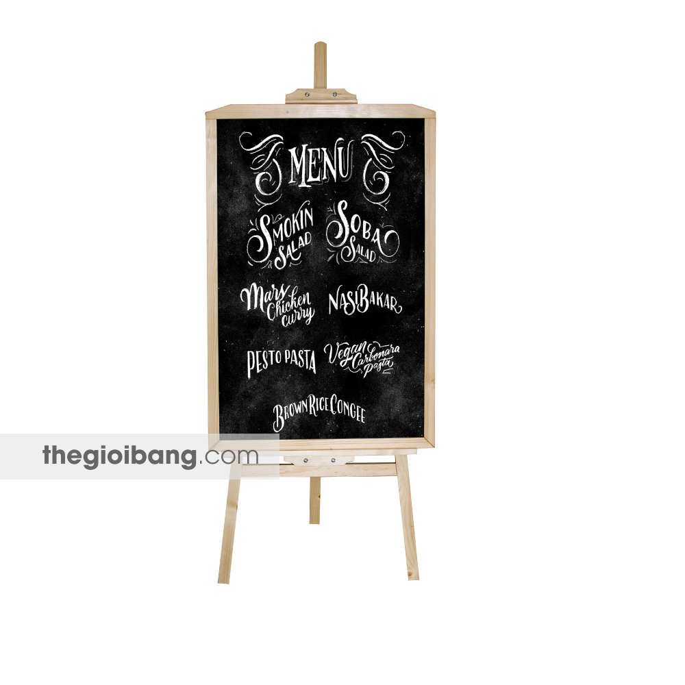 Bảng menu một mặt thường được kết hợp với giá vẽ gỗ