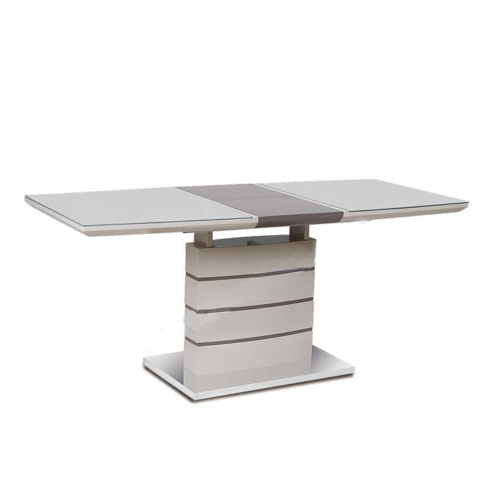 – Mặt bàn bằn gỗ kết hợp kính cường lực được thiết kế với tính năng mở rộng mặt bàn nhằm tăng diện tích khi cần.