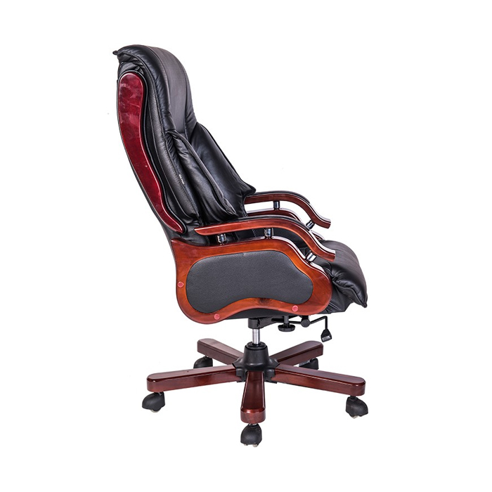 Tay gỗ tự nhiên ốp da 2 tầng , bát điều chỉnh độ cao cần hơi và độ ngả của ghế.