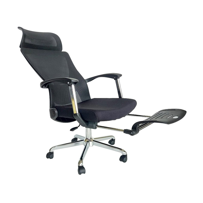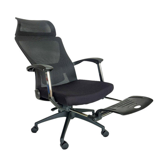 Ghế lưới GL333 đệm mút xốp bọc vải, khung tựa nhựa bọc vải lưới, tay nhựa kết hợp mạ. Ghế có thể hãm ngả nhiều góc độ, và có cơ cấu để chân bằng nhựa khi nghỉ thư giãn