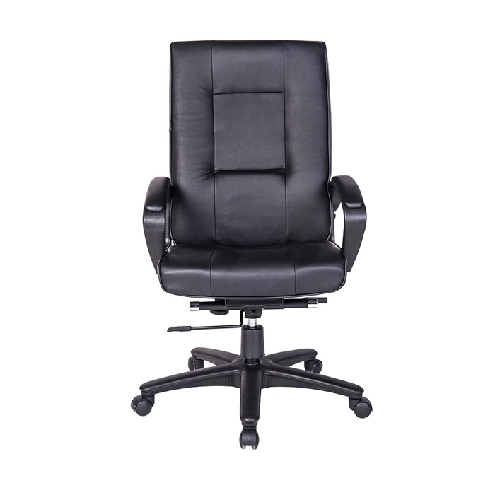 Ghế bọc PVC, da công nghiệp hoặc da thật cao cấp, tựa lưng có nhiều đường may hình chữ nhật trang trí, tay nhựa , bát 2 cần có 2 chức năng điều chỉnh độ cao và độ ngả.