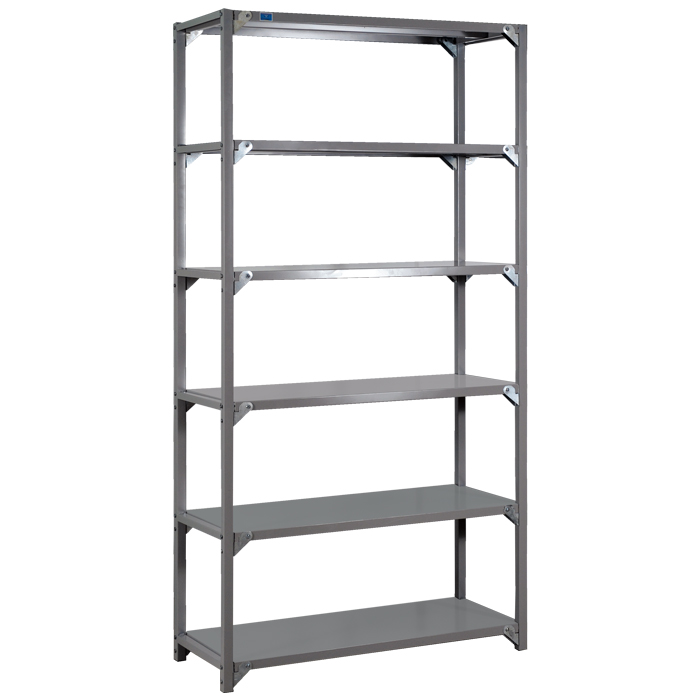 Giá thép đa năng có 5 tầng (kể cả đợt đáy), hồi giá hở, các đợt cố định, sử dụng 2 mặt.