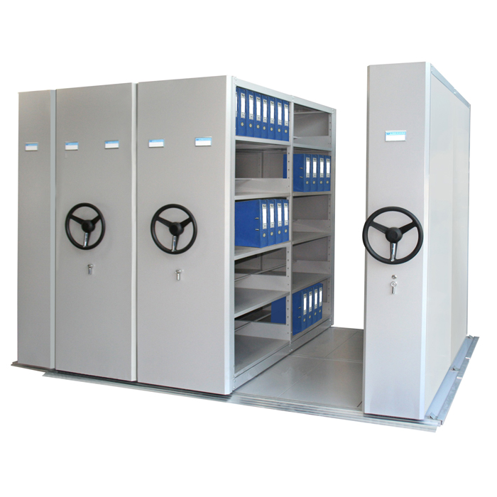 Tủ hồ sơ di động MCF1 điều khiển chuyển động bằng cơ cấu ray và bánh xe. Tủ có 2 dãy: dãy cơ bản và dãy nối tiếp