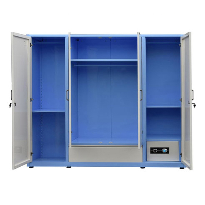 Tủ sắt TU15B3C4 gồm 3 khoang 4 cánh, có các đợt và suốt treo quần áo tiện dụng